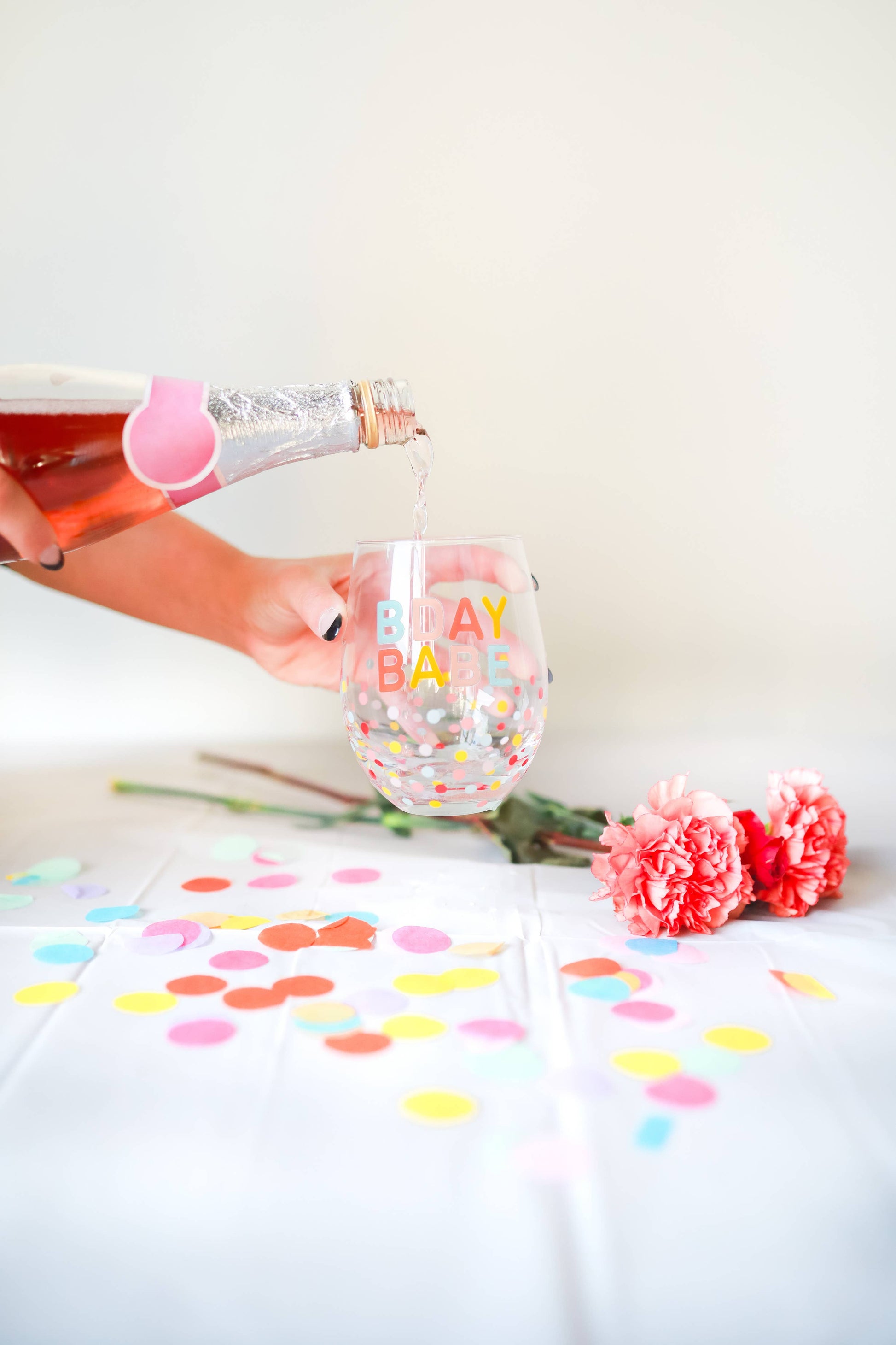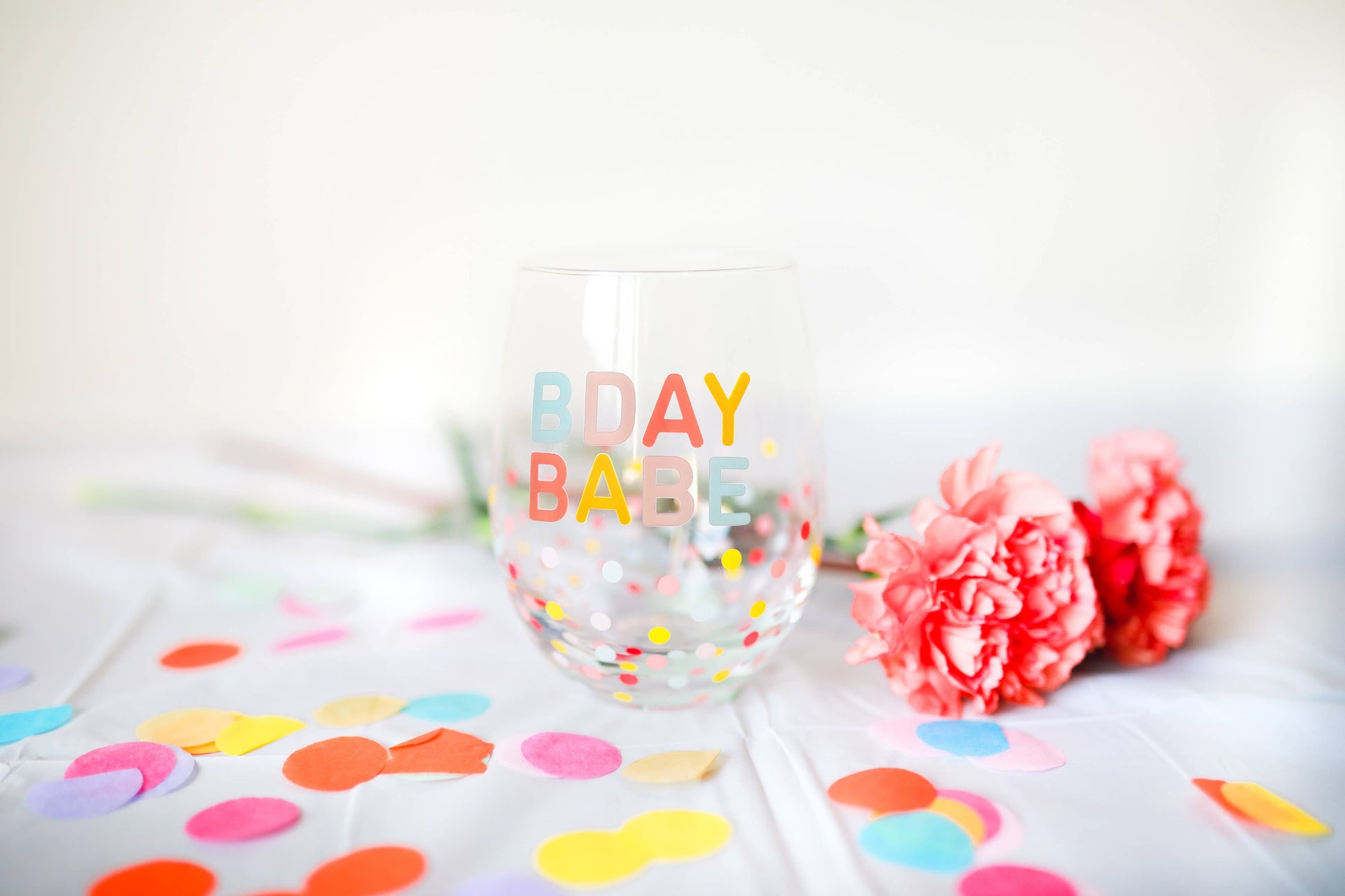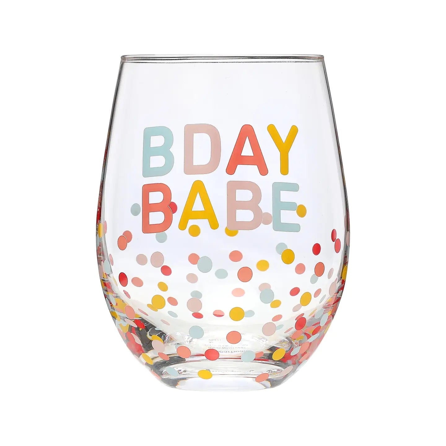 This birthday babe wine glass is the perfect accessory for the birthday girl! Includes one stemless wine glass with “bday baby” multicolor print and a matching polka dot design. This whimsical and fun wine glass is the perfect birthday celebration accessory, 21st birthday party decoration, drinkware for any birthday celebration, birthday party favor, or gift for the birthday girl!
