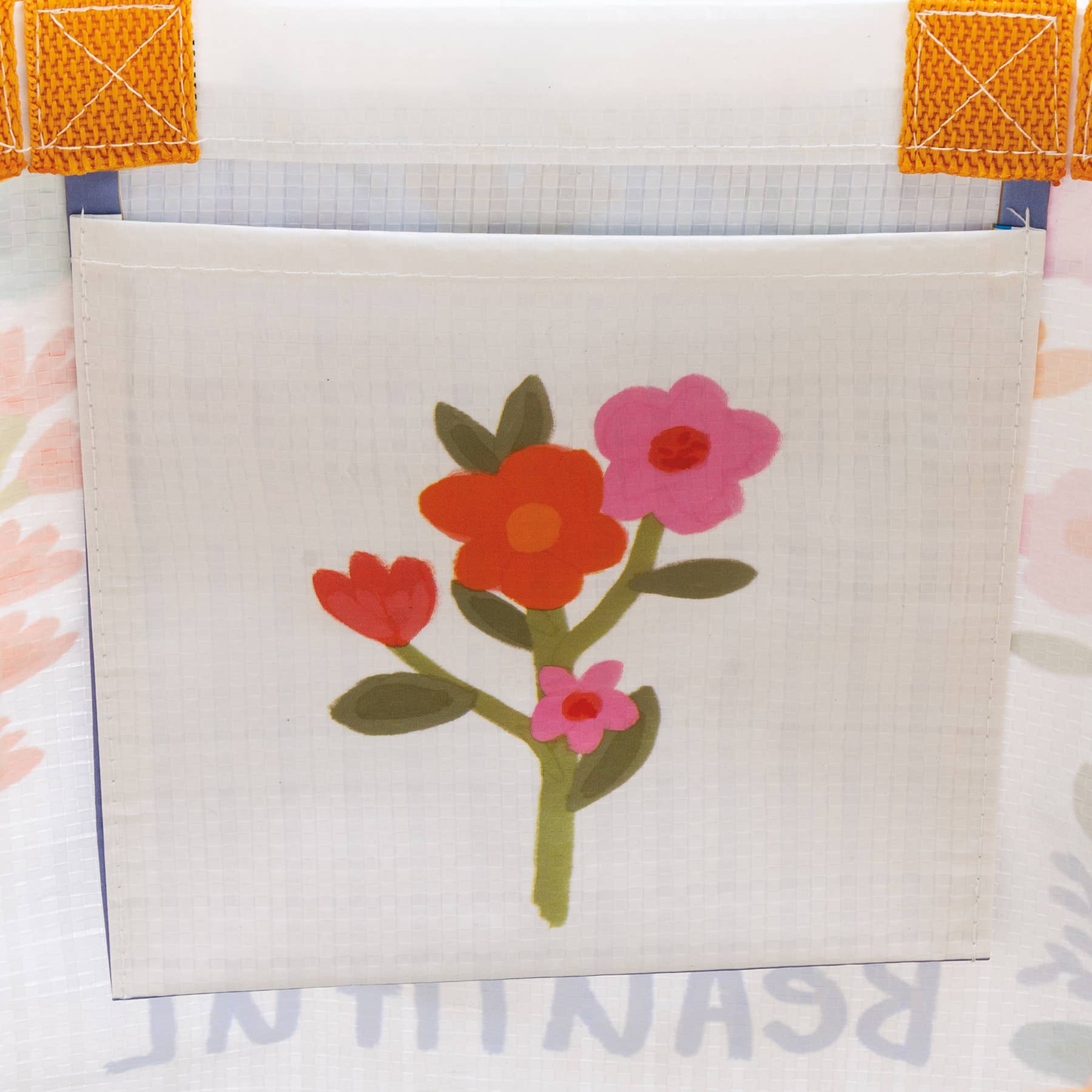 Made of post-consumer material, this double-sided market tote from our Inspiration & Blooms Collection features vibrant floral designs with "Kindness Is Beautiful" sentiment. Gusset features coordinating pattern. Our Kindness tote bag includes complementing nylon hand and shoulder straps and inside pocket.