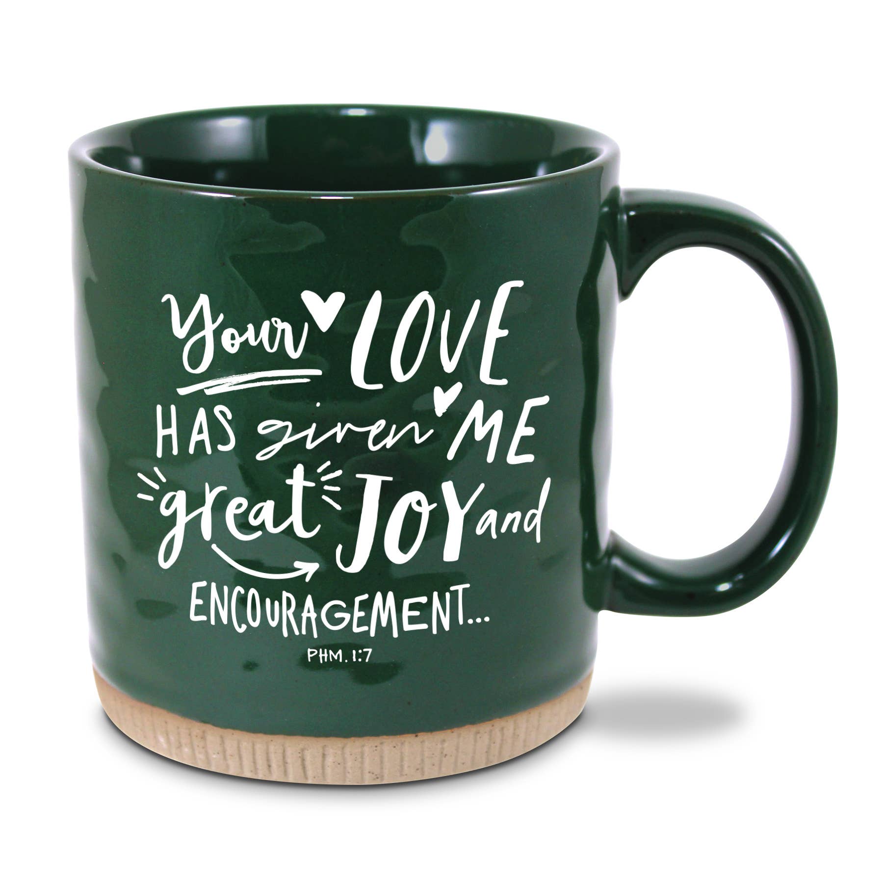 Let Someone Know How Much Love, Joy And Encouragement They Have Given You With The Special Message On This Mug. The Unique Design Of This Green Ceramic Mug Is Fun To Hold, Fun To Read, And Fun To Gift!