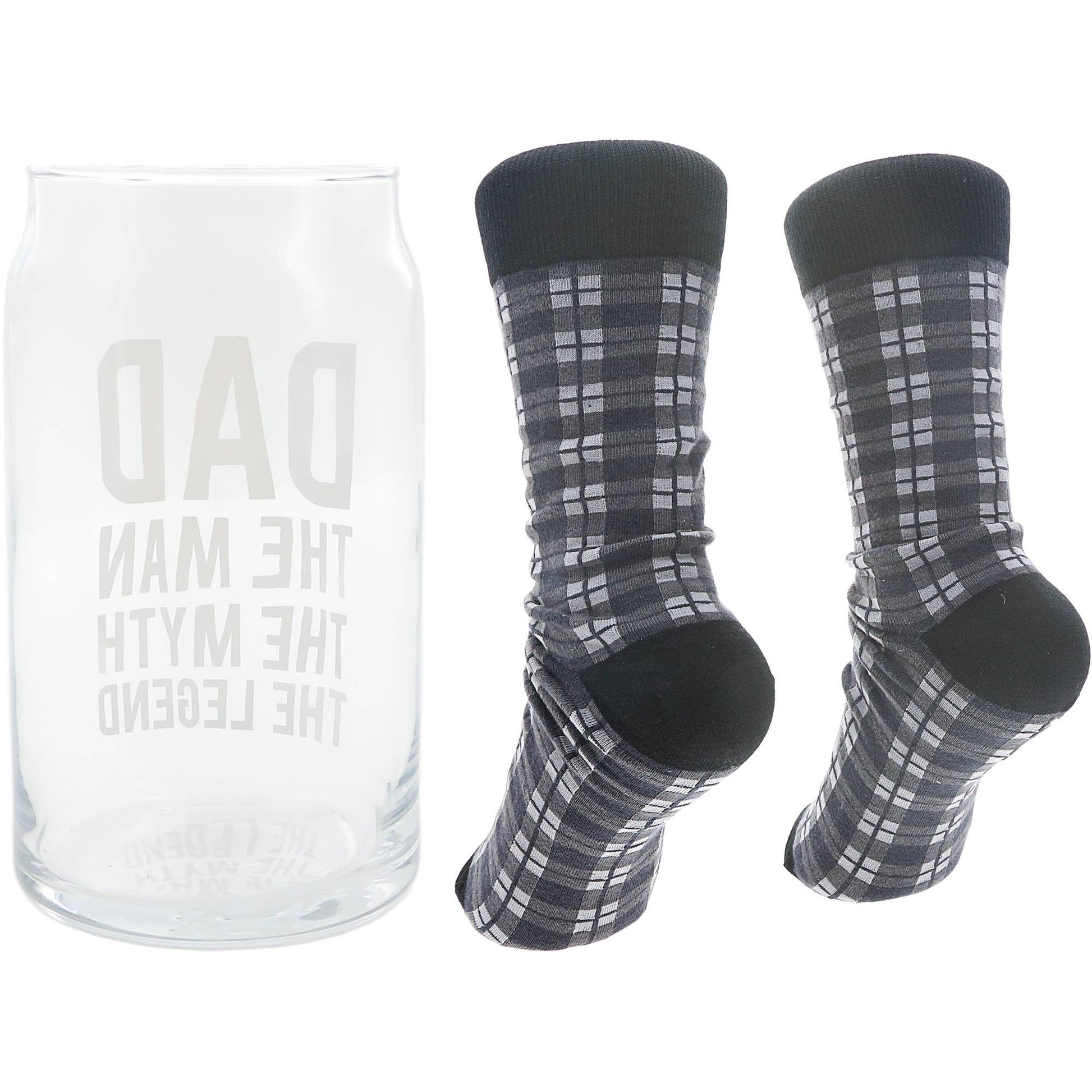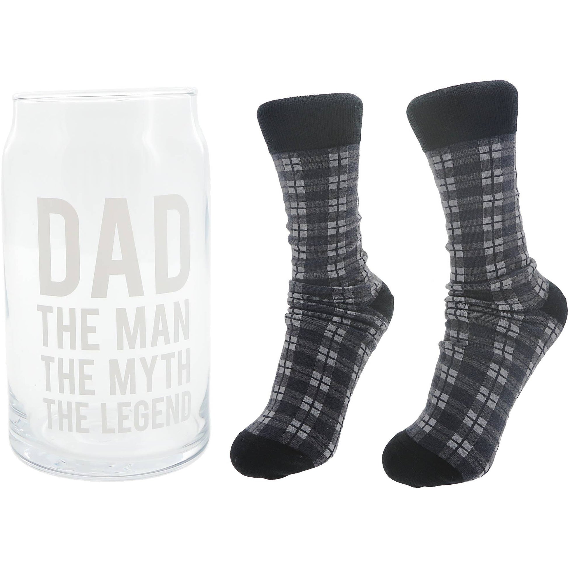 Excellent for sipping all sorts of beverages, including coffee, beer, cocktails, water, juices, and more. The glass has a white "Dad The Man The Myth The Legend" glossy sentiment on the front center. The glassware is handwash only with mild soap. Do not leave soaking in water for extended periods. Dry immediately.